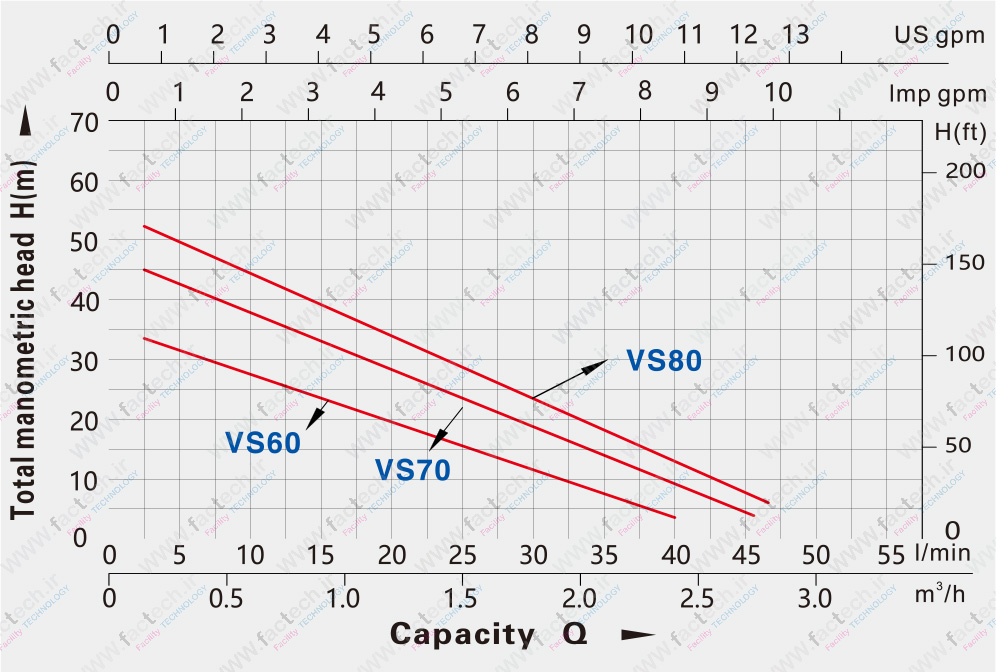 38 لیتر بر دقیقه - 2280 لیتر در ساعت - 2.3 متر مکعب در ساعت