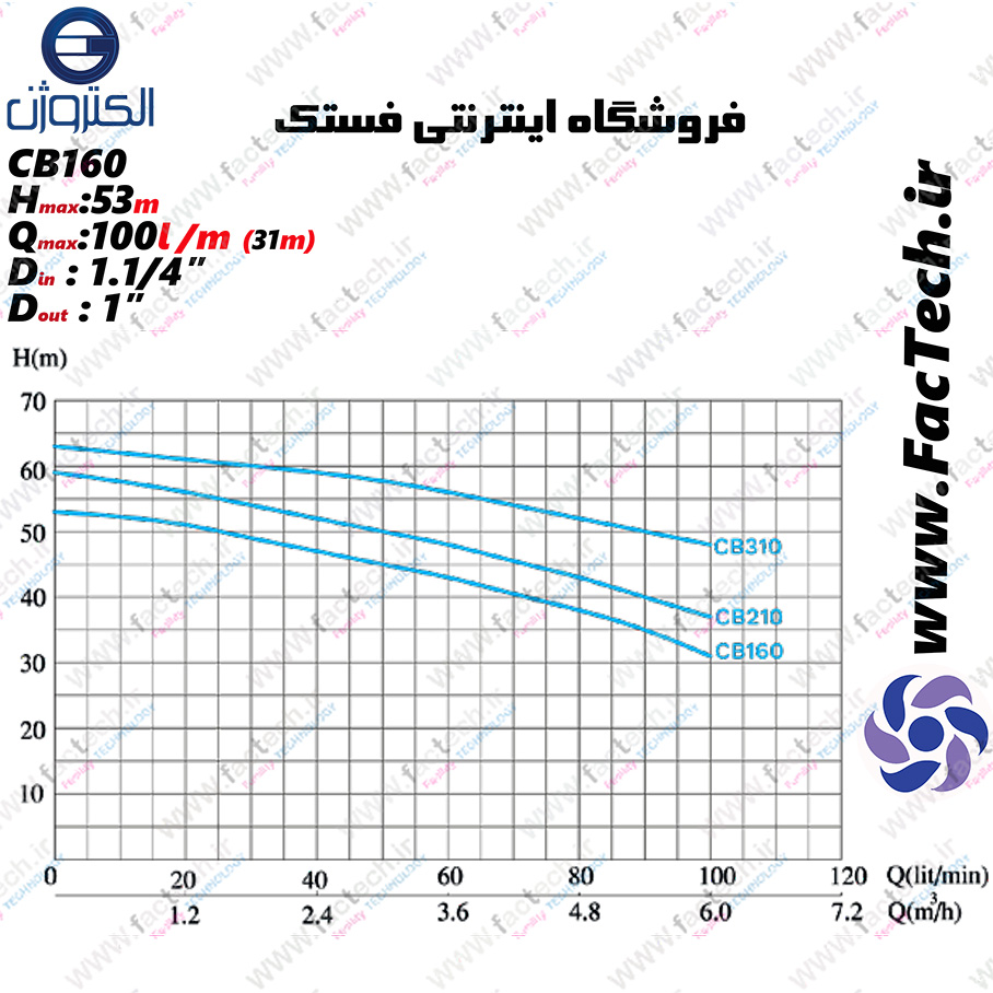 حداکثر آبدهی: 100 لیتر بر دقیقه در ارتفاع 31 متر-در ارتفاع کمتر،افزایش می یابد.